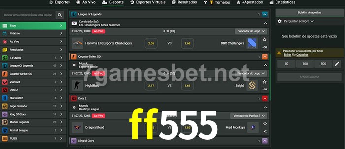 O ff555 oferece uma grande seleção de opções de apostas em e-sports com probabilidades competitivas